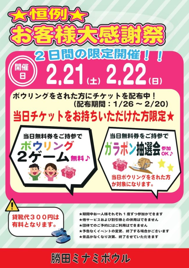 2月お客様大感謝祭開催決定!(2/21.22)